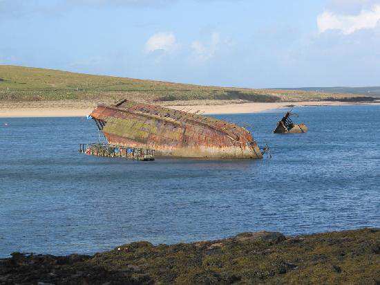 Sotto: Relitti delle navi della Marina Imperiale tedesca, tuttora visibili nella baia di Scapa Flow, in Scozia.