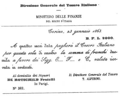 La campagna del 1859 contro l’Austria per la conquista del Lombardo Veneto, costò al Piemonte 50.000.000 di Lire finanziati dallo Stato più altri 40.000.000 di Lire ottenuti come prestito da banche inglesi e francesi e vide l’impiego di 60.000 uomini. La Francia, alleata del Piemonte stanziò una somma di 500.000.000 franchi con cambio Lira-Franco paritario e l’arruolamento di 140.000 soldati. Con l’armistizio di Villafranca tra la Francia, vera vincitrice della guerra e l’Austria sconfitta, parte della Lombardia fu ceduta da questa alla Francia che l’avrebbe girata al Piemonte il quale, in cambio dell’alleanza, cederà La Savoia e Nizza a Napoleone III.